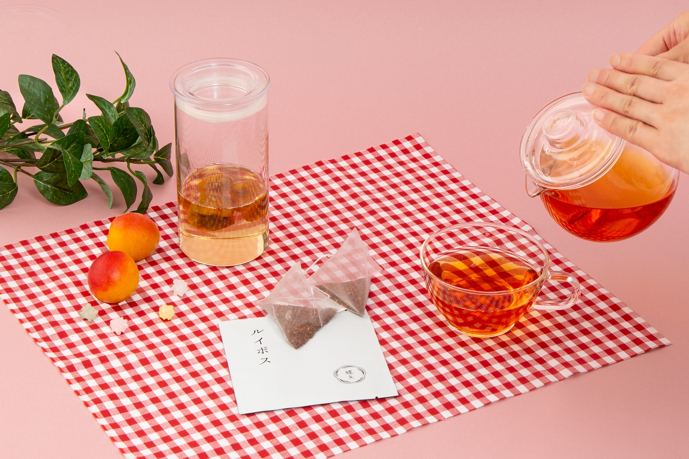 ルイボスティーと梅シロップの新たなマリアージュで、おひとり時間のくつろぎのティータイムを。アイスでもホットでもお楽しみいただけます。