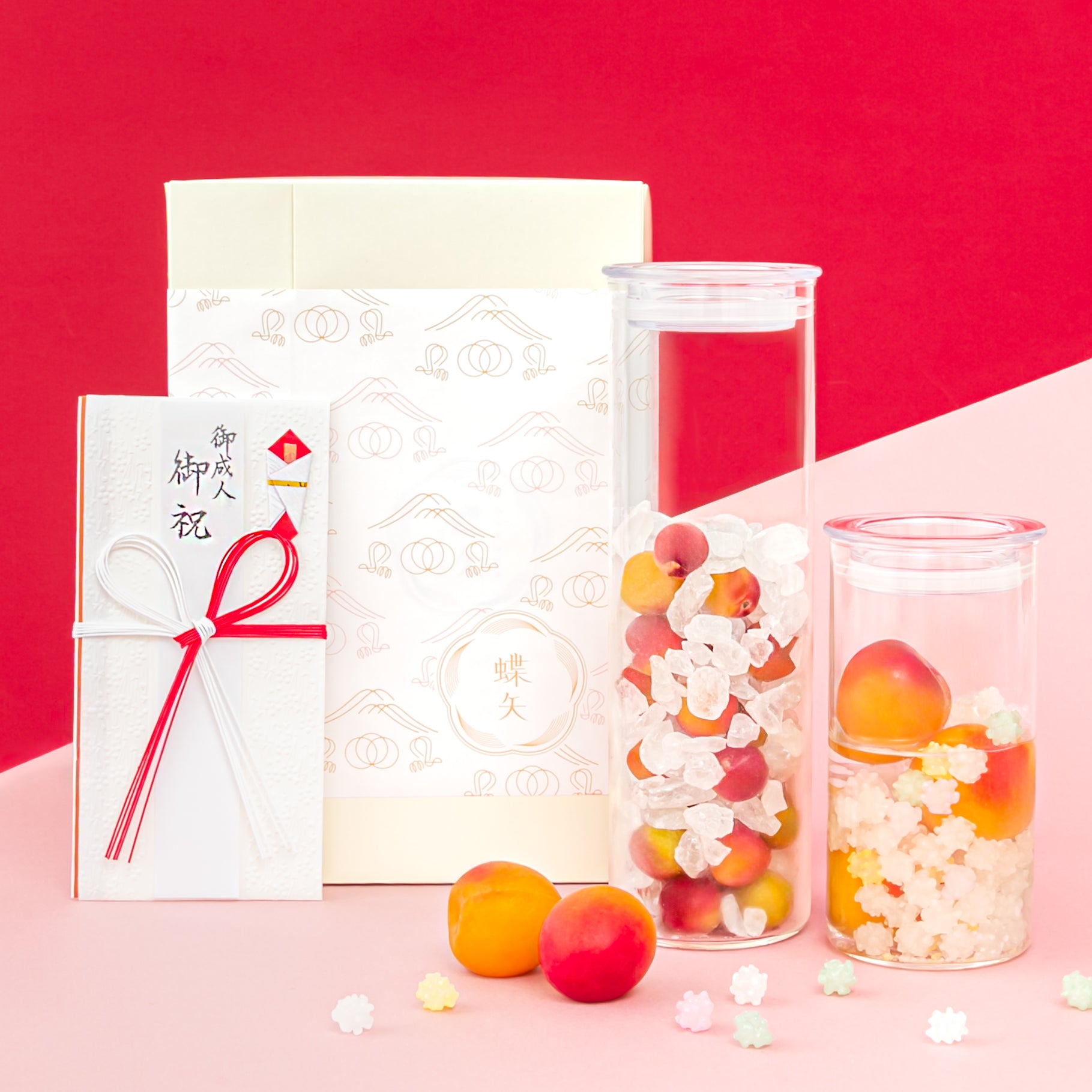 二十歳のお祝いとして“初めての梅酒”や梅シロップを手作りできる「蝶矢梅キット」を贈りませんか。