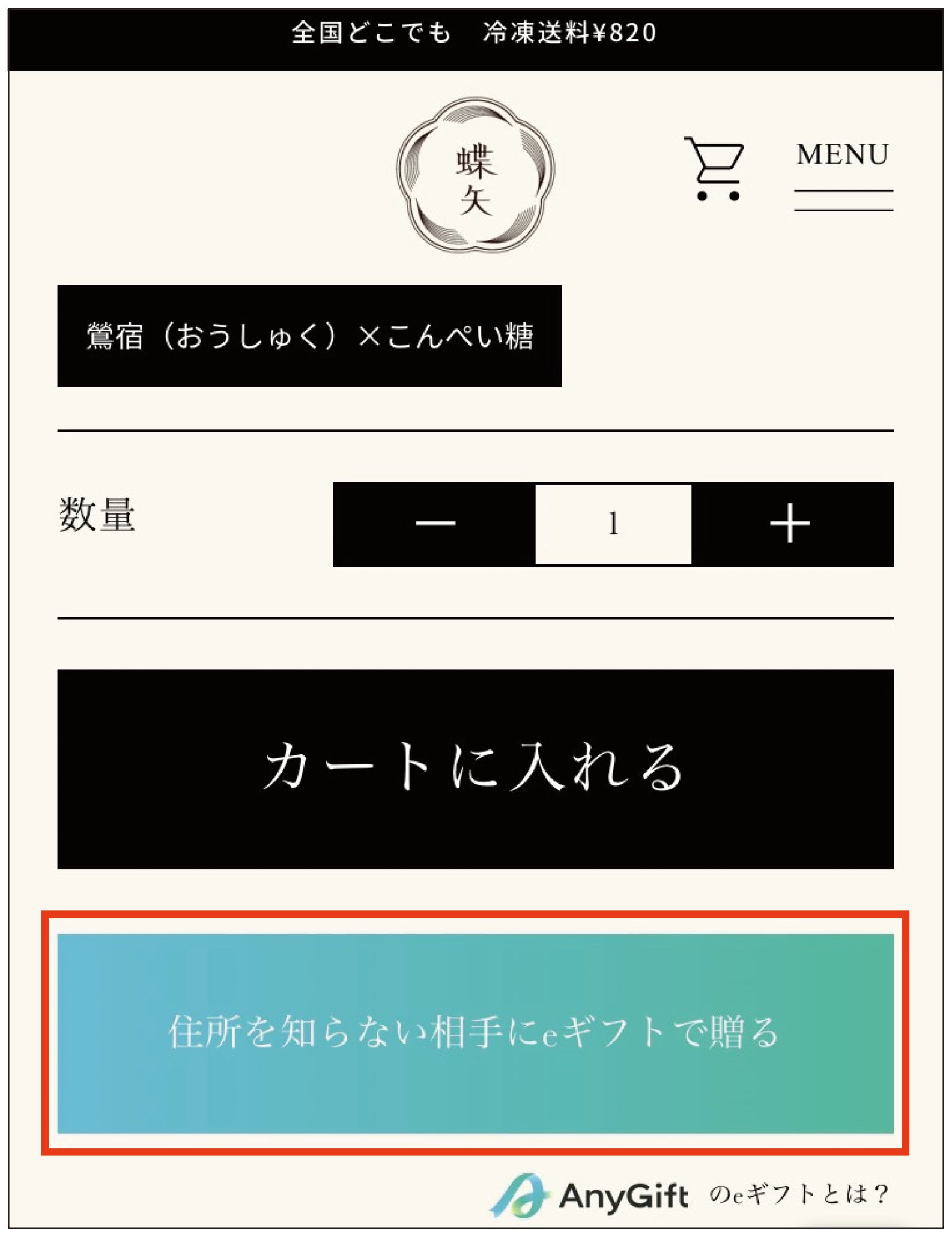 商品ページで「住所を知らない相手にeギフトで贈る」を選択します。