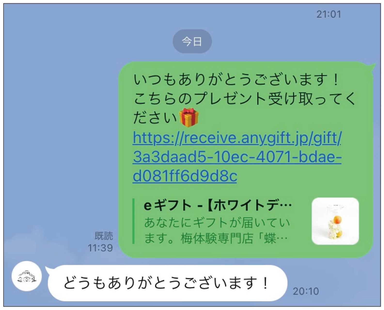 LINEやメールでコピーしたeギフトの受け取りURLをお相手に送ります。